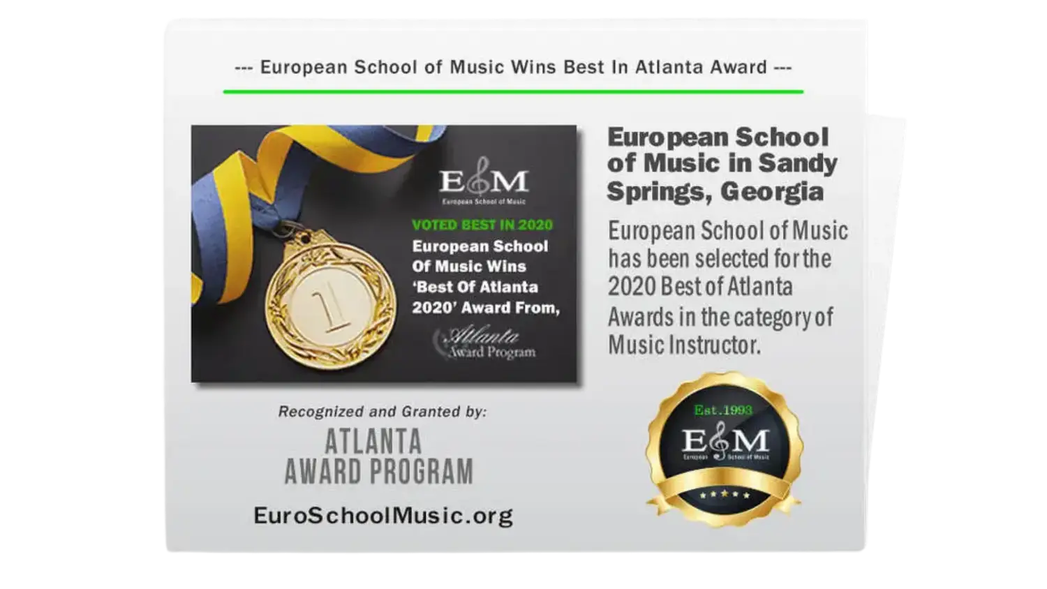 Let's get aquainted and see if this is a good fit for both if us and witness our award-winning instruction. *Valid one per household and for one (1) 30 Minute music lesson from ESM.